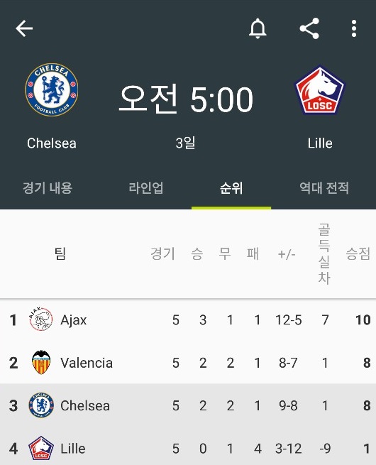 순위표를 보면 첼시는 승점 8점으로 3위, 릴은 승점 1점으로 유로파 진출 희망도 없죠. 첼시는 이 경기에서 무조건 이겨야 16강을