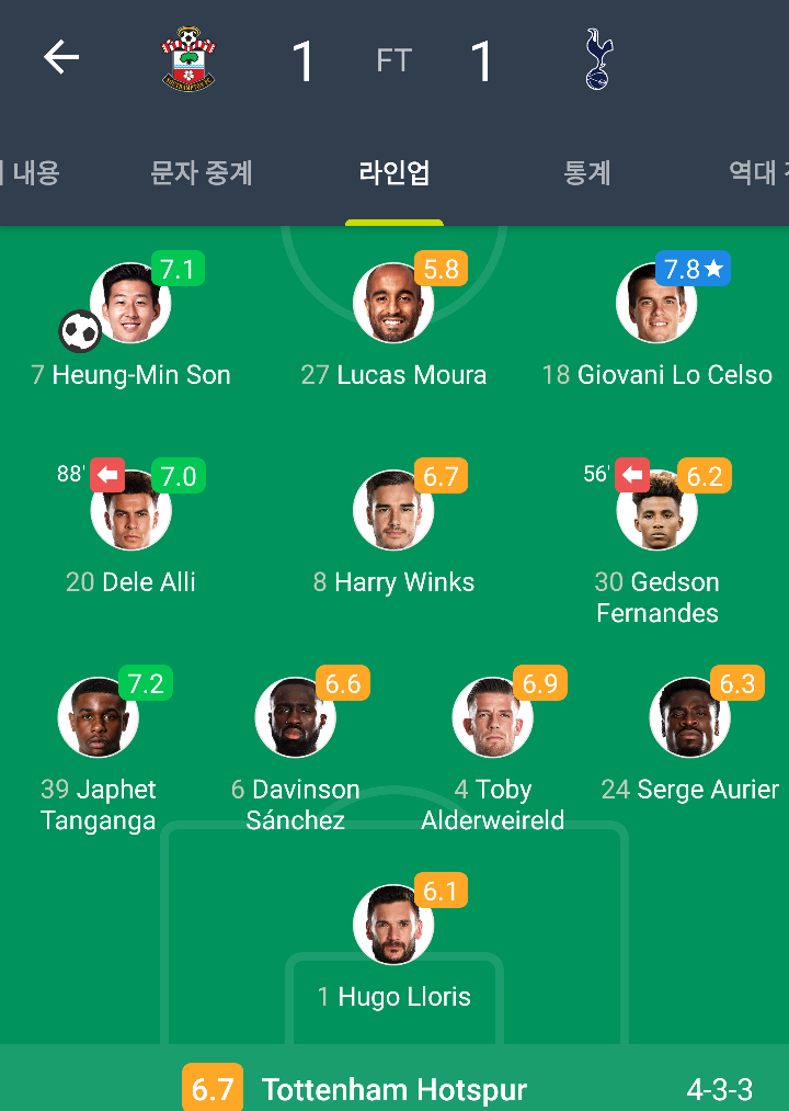 양팀의 라인업입니다. 일단 토트넘은 로셀소, 모우라, 손흥민 조합이 성공적으로 자리를 잡아가는 것 같고, 맨시티는 주중 efl컵에서 주전들을 대거 기용하면서 체력적인 문제를 이번 경기에서 보일 수 있습니다.
