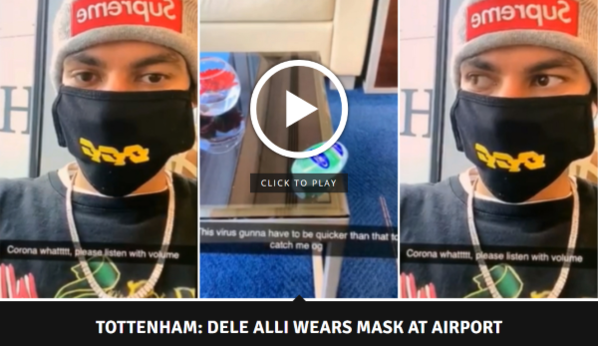 문제가 된 영상에는 델레 알리가 “코로나 뭐(Corona what)!, 볼륨을 높여 들어줘"라는 메시지와 함께 동양인 남성으로 추정되는 남성의 모습이 담겨 있었습니다.