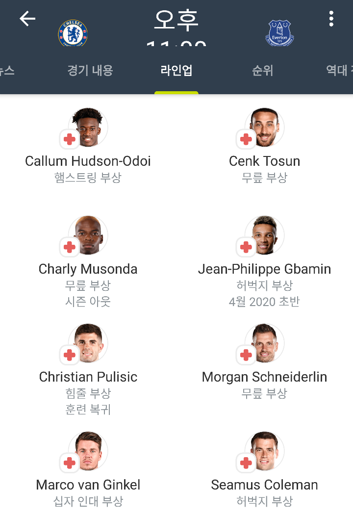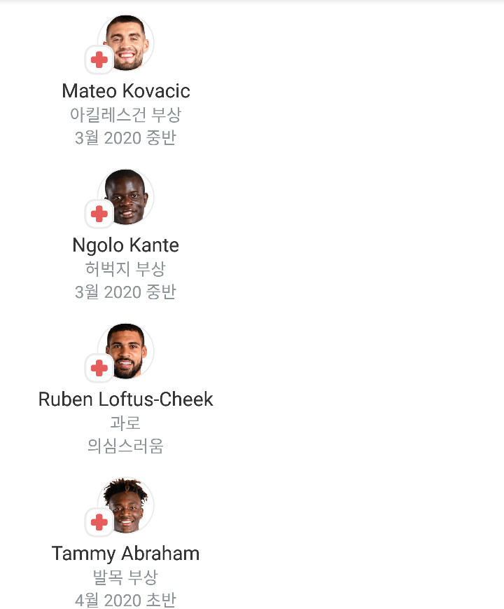 이렇게 부상자로 많은 선수가 나오지 못하는 첼시라 부상자 쪽에서는 공백이 어마어마하게 클 것 같네요!