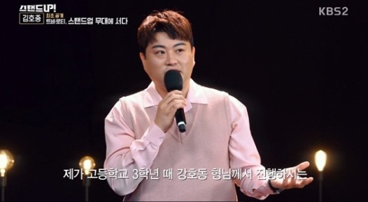 미스터 트롯에서 4위를 차지한 김호중이 스탠드업에서 출연했습니다.