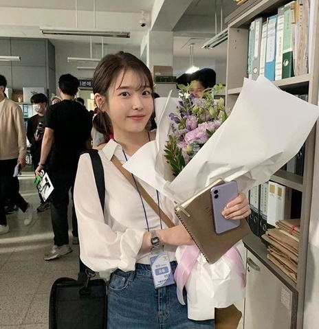 아이유의 꽃다발 사진이 화제가 되고 있네요!