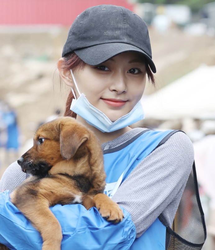 트와이스 쯔위가 2020년 5월 17일 경기도 포천시 유기동물보호소 애린원에서 열린 블루엔젤봉사단의 유기동물 봉사활동에 참석했네요~