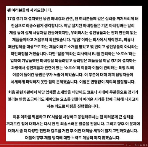 fc서울의 사과가 엄청난 화제가 되고 있습니다.