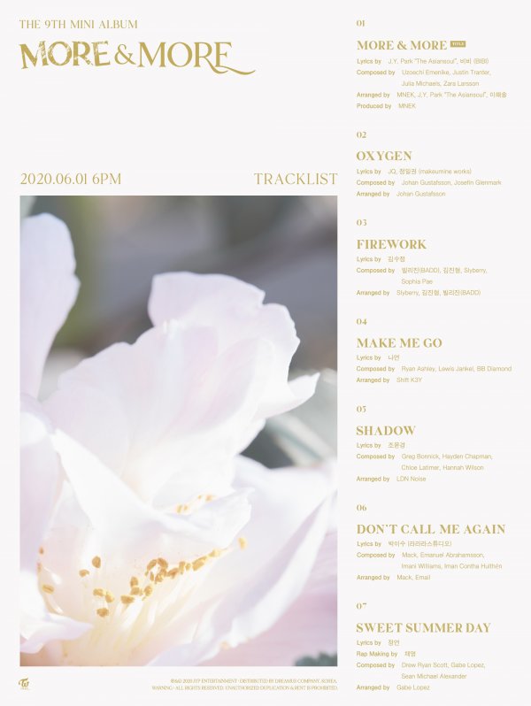 트와이스의 새 앨범 'MORE & MORE'(모어 앤드 모어)에 참여한 화려한 작가진이 공개가 되었는데 박진영이 작사참여했군요!