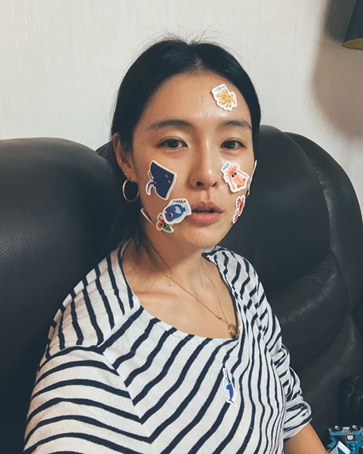 가희는 얼굴이 스티커를 붙이고 근황 사진을 공개했네요!