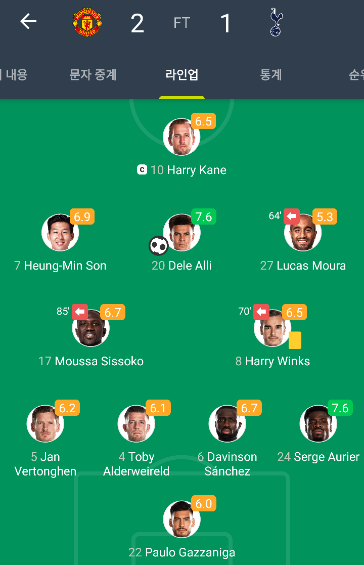 2)토트넘 맨유 부상자 명단 지난 경기 라인업