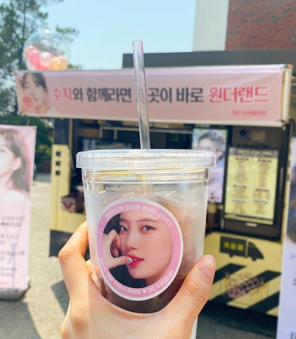 이번에 커피차를 인증한 수지는 현재 올해 방영을 앞둔 배우 박보검, 정유미, 탕웨이 등과 함께 영화 '원더랜드' 촬영에 한창이라고 합니다!