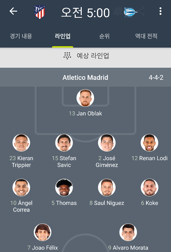 양팀의 예상라인업입니다. 확실하게 at마드리드가 전력이 더 강하다고 볼 수 있겠죠!