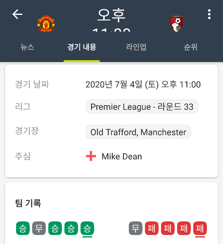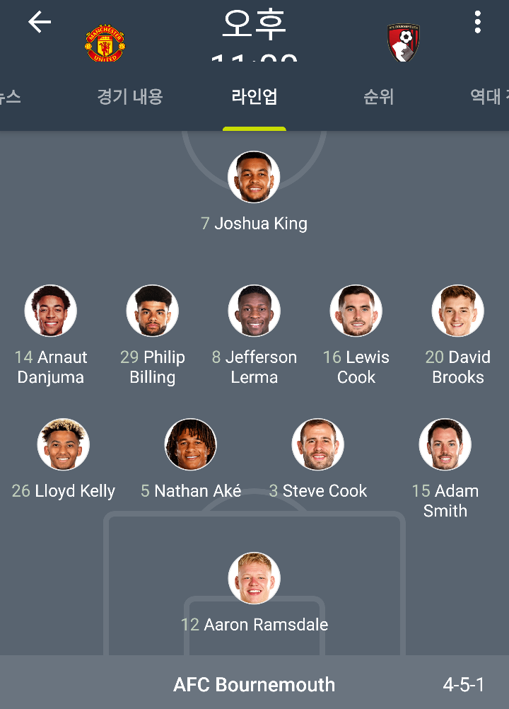 본머스가 미친듯한 집중력을 보여주면서 수비를 잘하다가 역습으로 선제골을 넣지 못하는 이상 다득점으로 맨유가 쉽게 승리하는 경기가 예상이 된네요!!