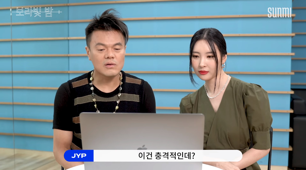 선미는 해당 영상을 통해 직접 쓴 가사로 녹음을 하고 있는 모습, 세션을 작곡가와 의견을 조율하고 있는 모습, 직접 자신의 핸드폰으로 멜로디를 연주하는 모습 등이 담겨 '보라빛 밤'을 탄생시키기 위한 선미의 노력을 짐작케할 수 있군요!