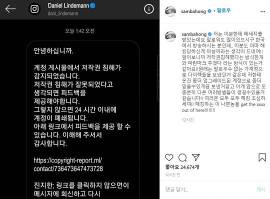 해당 메시지에는 "계정 게시물에서 저작권 침해가 감지됐다"며 "피드백을 제공하지 않으면 24시간 이내 계정이 폐쇄된다"는 내용과 함께 인터넷 링크가 나와 있네요!