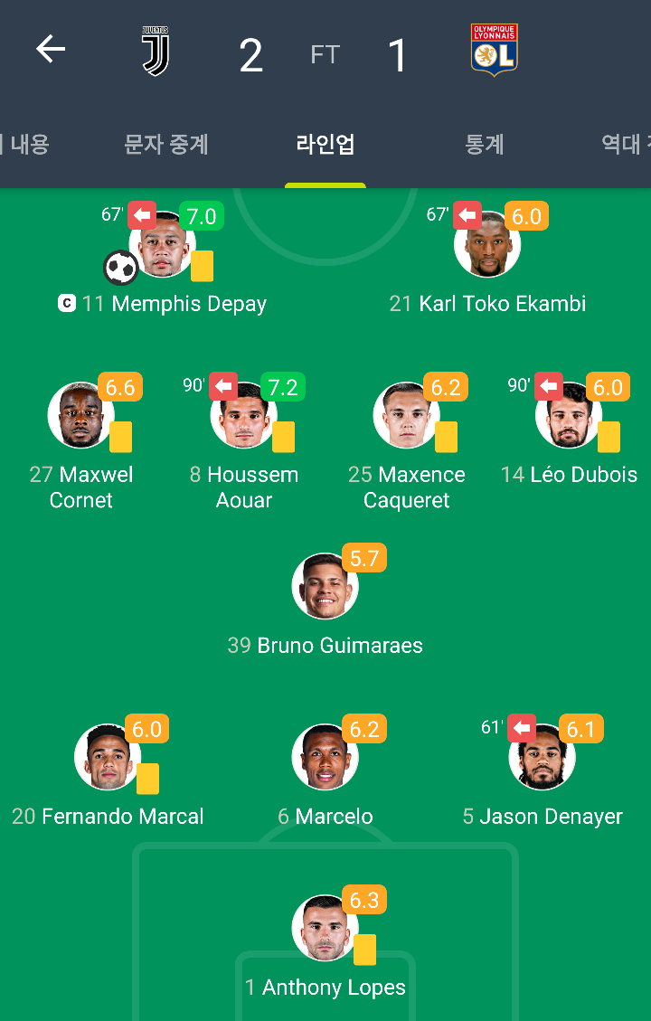 올라오는 과정에서 경고를 한장도 받지 않으면서 여유로운 경기를 펼쳤는데 리옹의 경우 선발 중에 6명이 경고를 받으면서 간신히 올라왔습니다!
