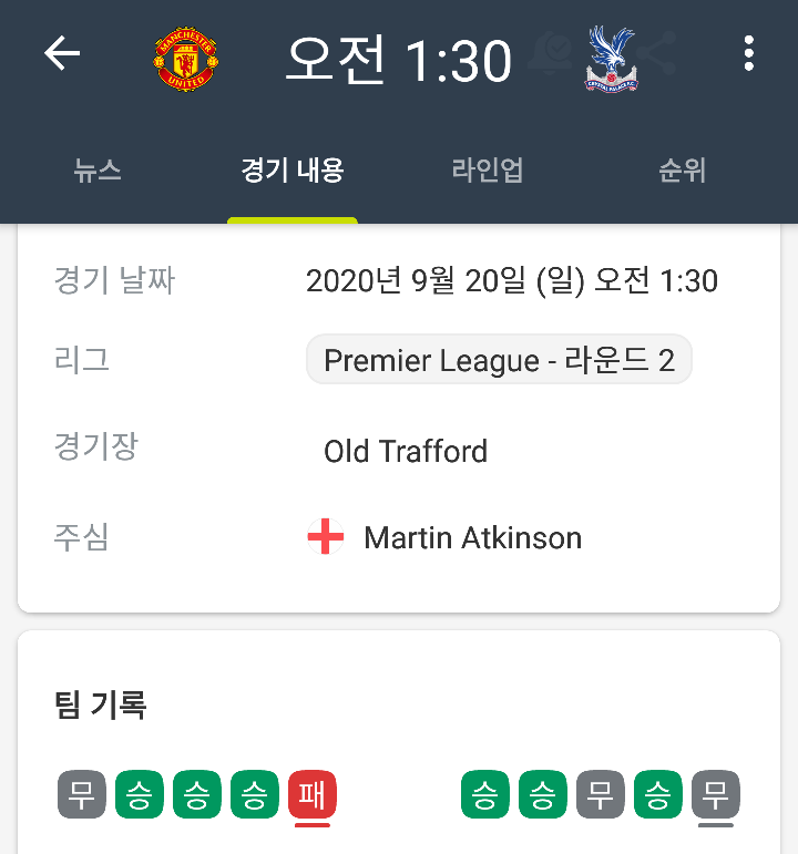 맨유는 1라운드 경기가 취소되었고 팰리스의 경우 홈에서 사우샘프턴을 잡고 1승을 얻은 상태입니다.