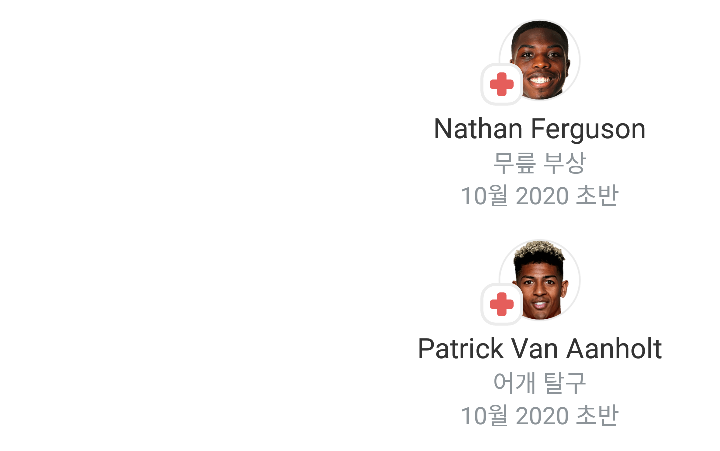 부상자로 인한 공백안 팰리스가 훨씬 많군요! 맨유는 아직 정규리그 경기를 치르지 않았는데..
