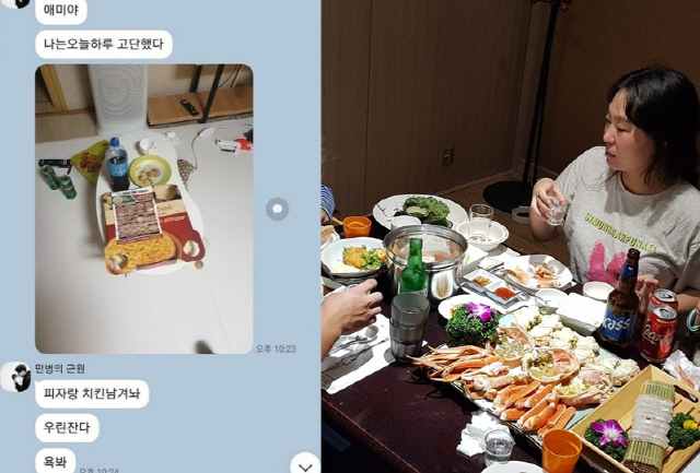 "애미야. 나는 오늘 하루 고단했다. 피자랑 치킨 남겨놔 우린 잔다. 욕봐"라고 적었고 정주리는 "이 와중에 내가 좋아하는 닭 날개 2개는 안 먹었네. 고맙다?"고 글을 남겼습니다. 그리고 남편을 '애처가', '만병의 근원'이라고 카톡이름을 저정해 놨네요!