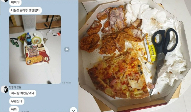 정주리는 남편이 보낸 메시지도 공개했습니다. 정주리의 남편은 피자 박스 사진을 보내며