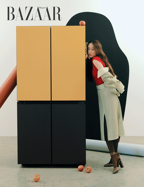 갤러리를 연상케 하는 공간에서 컬러풀한 의상을 입고 도도하게 포즈를 취한 크리스탈의 모습이 너무 이쁘네요! 특히 가전 제품과 함께하는 첫 촬영임에도 전혀 어색함 없이 크리스탈은 화보를 촬영했다고 전해졌습니다.