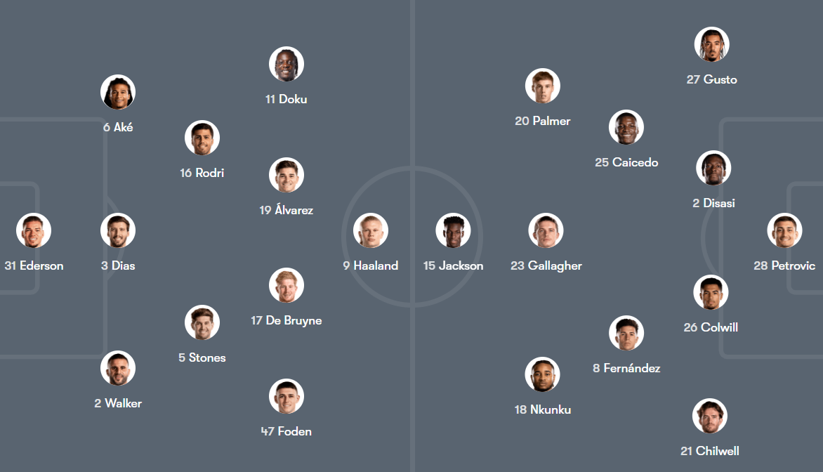 그럼 이번에는 맨시티 첼시의 라인업을 보겠습니다.