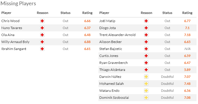 노팅엄도 크리스 우드가 부상으로 없기 때문에 무승부 혹은 리버풀의