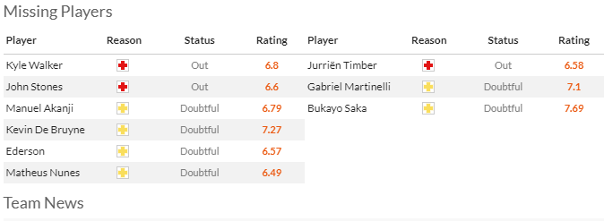 2) 맨시티 아스날 부상자명단