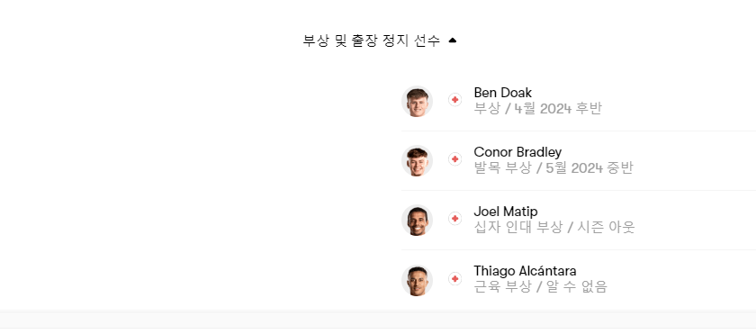 양팀의 부상자를 보면 리버풀은 4명 풀럼은 부상자가 없습니다.