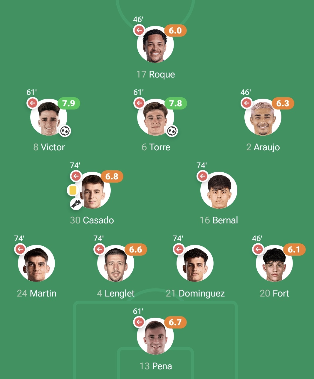 뤼디어 쿠르트아 바스케스까지 약 9명의 1군 선수들을 기용하였습니다.