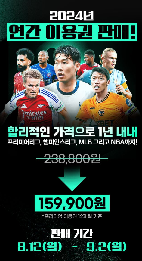 PL 전 경기, 챔피언스리그 등 해외축구부터 MLB, NBA까지! 프리미엄 스포츠 생중계를 만나보세요