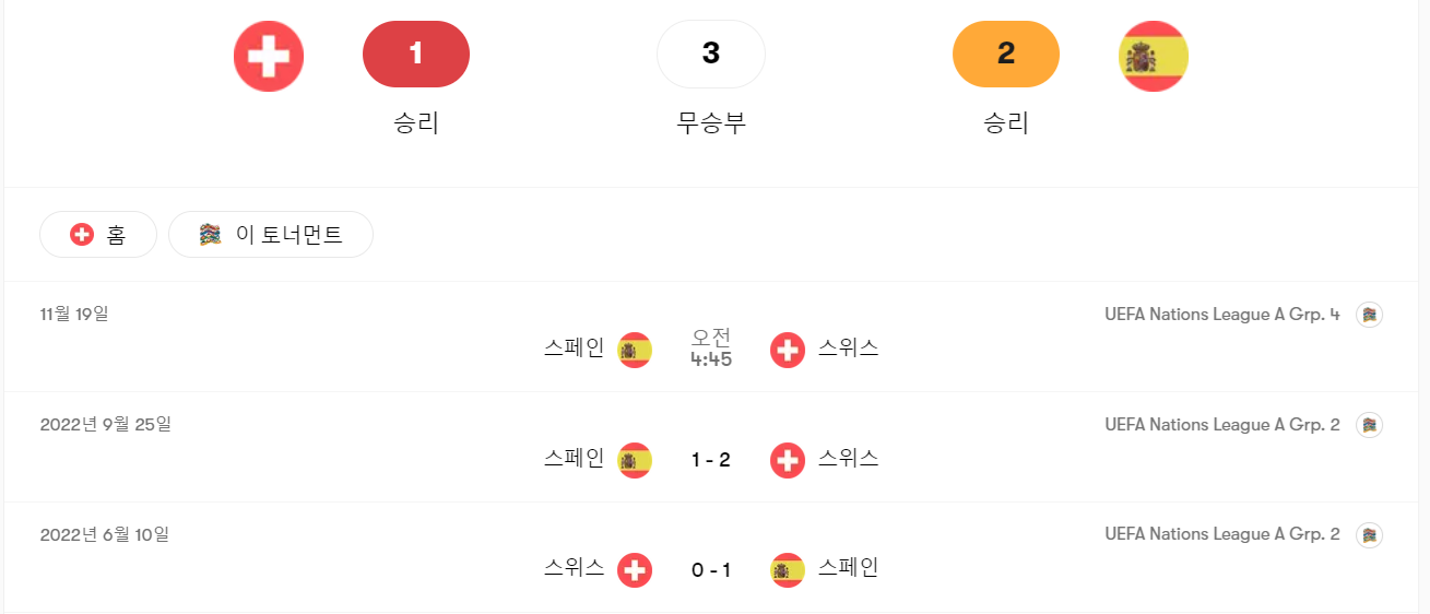 그리고 최근 페이스도 스페인이 좋은 상황입니다. 결국 스위스가 홈 팀인 것을