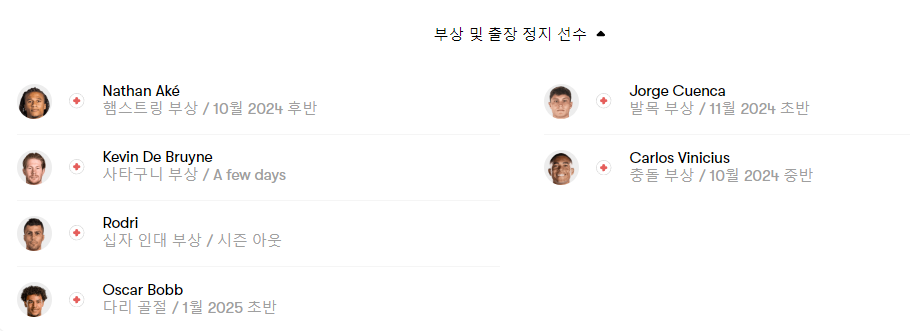 2) 맨시티 vs 풀럼 부상자 현황