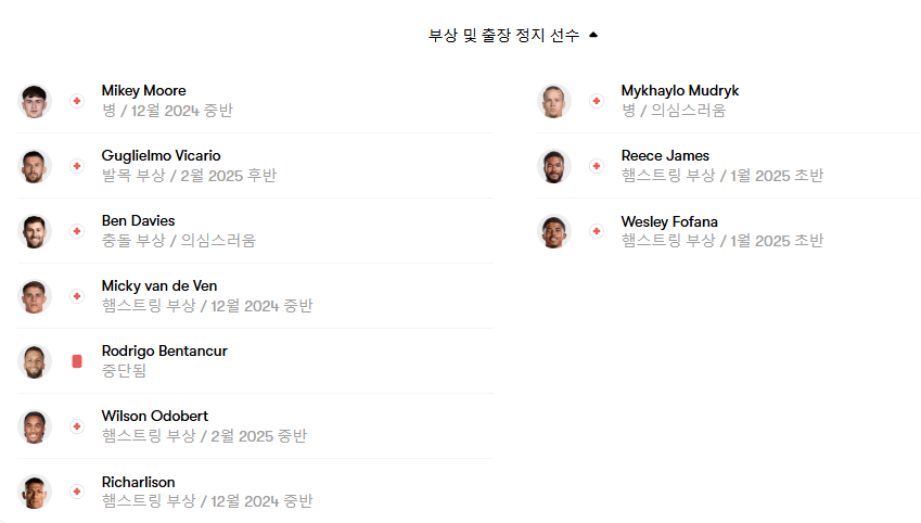 (양팀의 부상자 살펴보세요)