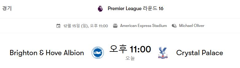이번 경기는 프리미어리그가 일부 진행된 가운데 브라이튼과 팰리스의