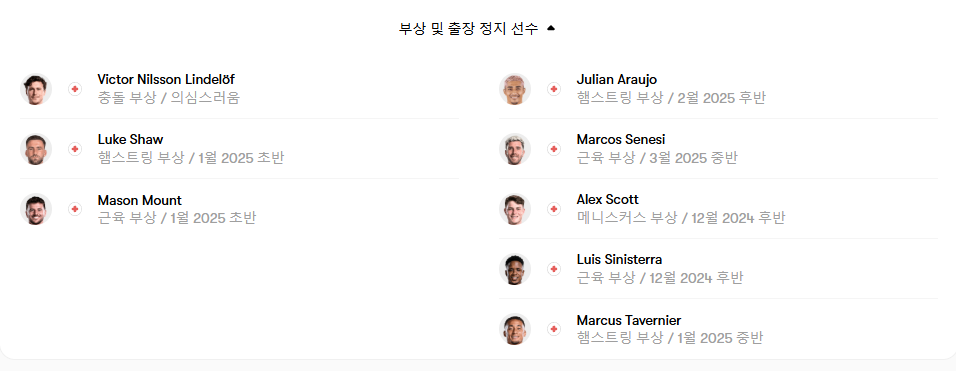 (양팀의 부상자 명단 확인하세요)