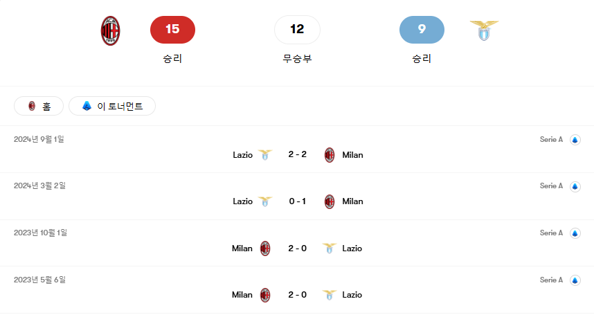 내일 열리는 세리에 A 경기에서 AC 밀란과 라치오가 맞붙습니다. 이 경기를 앞두고 역대 전적, 배당률 분석, 승부 예측을 통해 경기를 전망해보겠습니다.