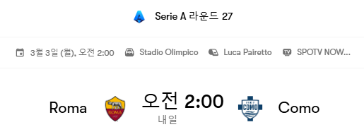리그 9위 로마와 13위 코모의 대결입니다. 누가 이길까요?