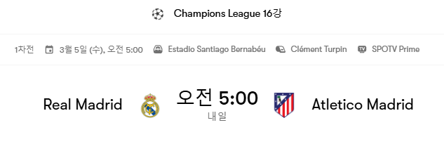 내일 열리는 UEFA 챔피언스리그 16강 1차전에서 레알 마드리드와 아틀레티코 마드리드가 맞붙습니다. 이 경기를 앞두고 양 팀의 역대 전적, 배당률 분석, 승부 예측을 살펴보겠습니다.